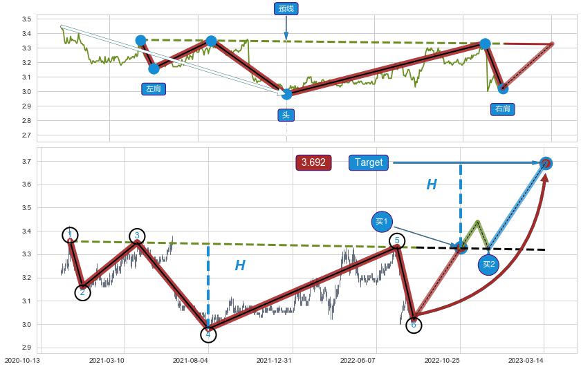 ➣ 最小反转涨幅→𝐇: 0.36453 (头部与颈线垂直距离)