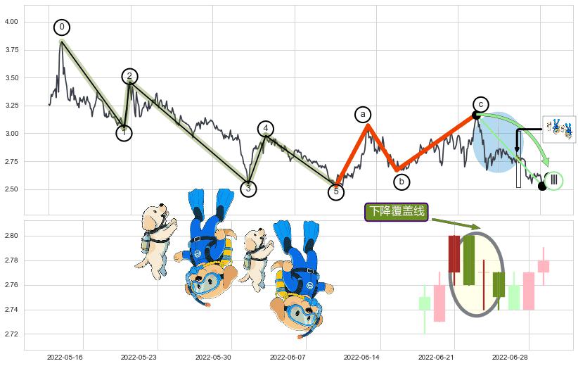 | 10 🅚:绵绵阴跌|下跌不止 ➕ 🌊:波浪理论下跌5浪延续:猜想C点强阻力小反弹终止,猜想保持下跌5浪方向下行(均值回复后大周期继续趋势跟踪) ☞ 看空信号 ⇥ 【🅚线】交织【图形】⇥ 综合量化分数: 34 | > |
