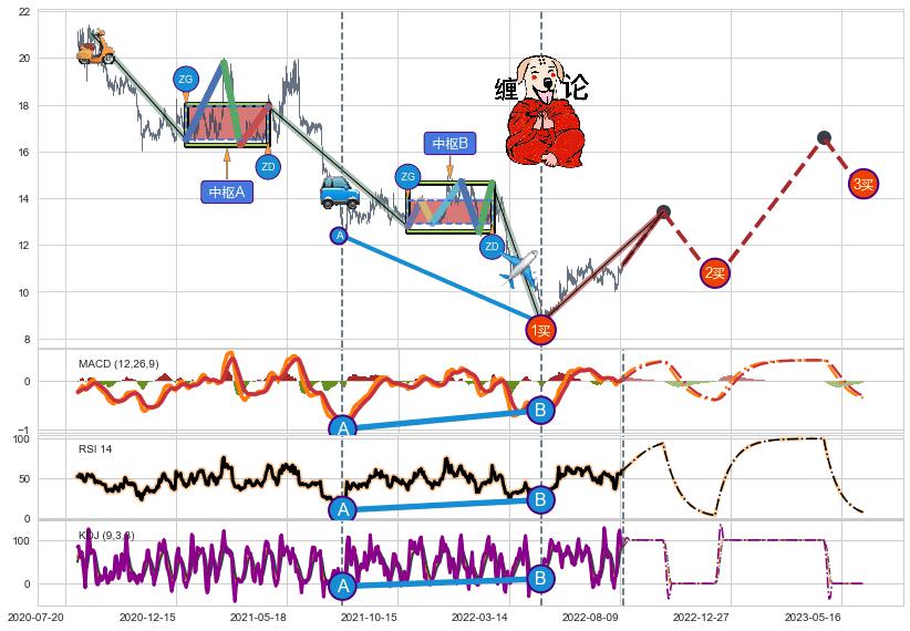 | 7 🅚:【烘云托月】买入点 ➕ ☯️:缠论买卖点下降缠中枢AB形成后猜想拐点1买已到达,猜想后续持续拉升(均值回复) ☞ 看多信号 ⇥ 【均线】交织【图形】⇥ 综合量化分数: 51 | > |