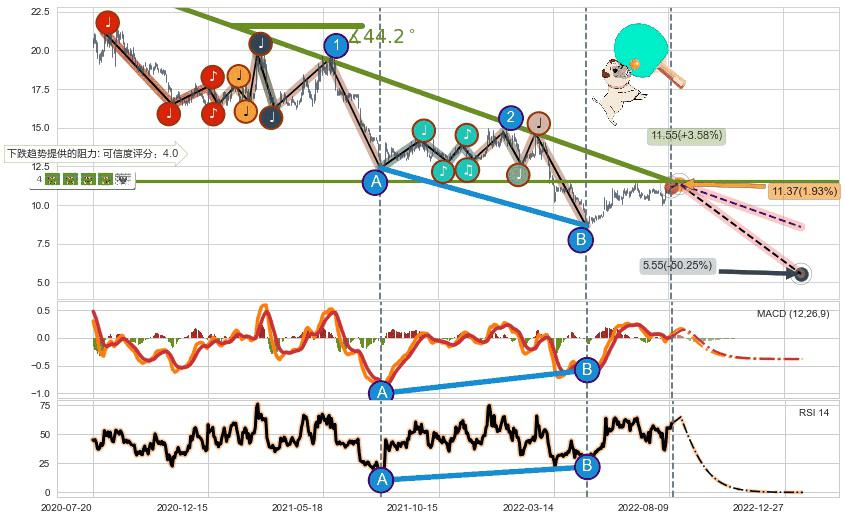 ♘ 阻力价格位14.34,可信任强度92.74%,距离最后交易2022-08-12形成的收盘价格11.15相差 +28.59%