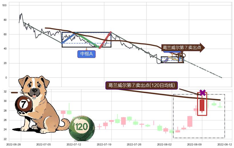 ➣ 【中枢B】:2022-06-15-2022-08-05,中枢由4笔构成,共38交易日, ZG=26.80, ZD=23.30