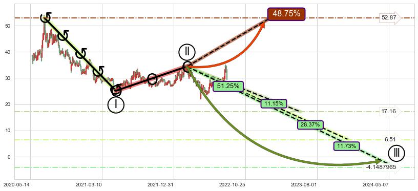 ➣ 调整浪已超过预测的c点位置,后续大趋势循环浪继续下跌概率51.25%,谨慎做多