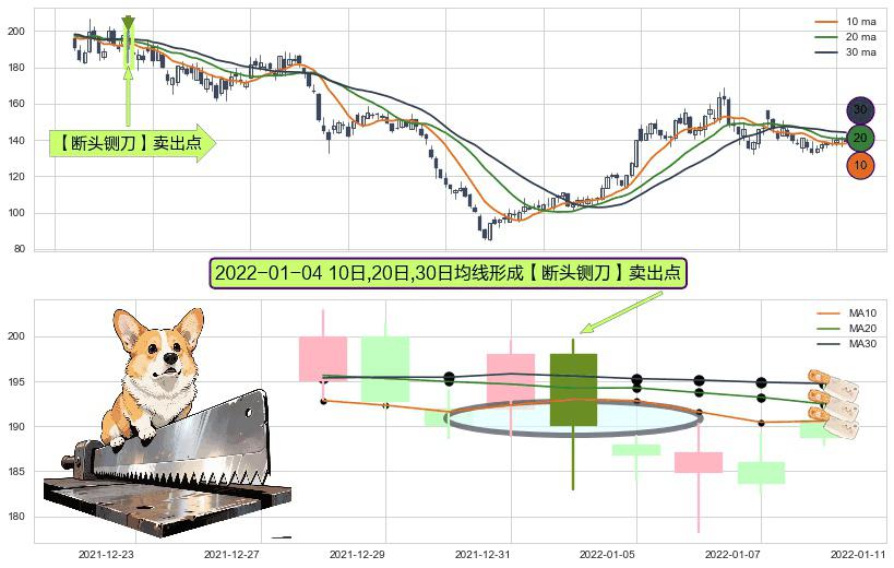 形态多维评估: ⚀ 2022-01-04日显现 10日-20日-30日均线 【断头铡刀】卖出点 看空信号,后市看跌,卖出