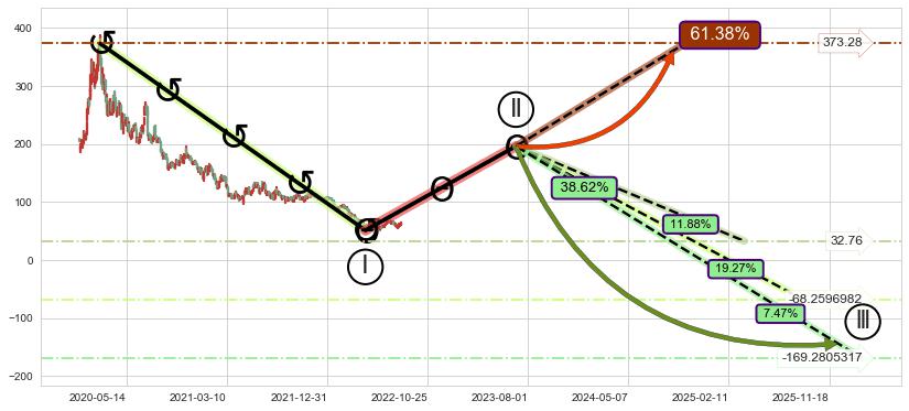 ➢ 高概率大级别循环下跌浪被破坏,反转向上(突破5浪起点)概率61.38%