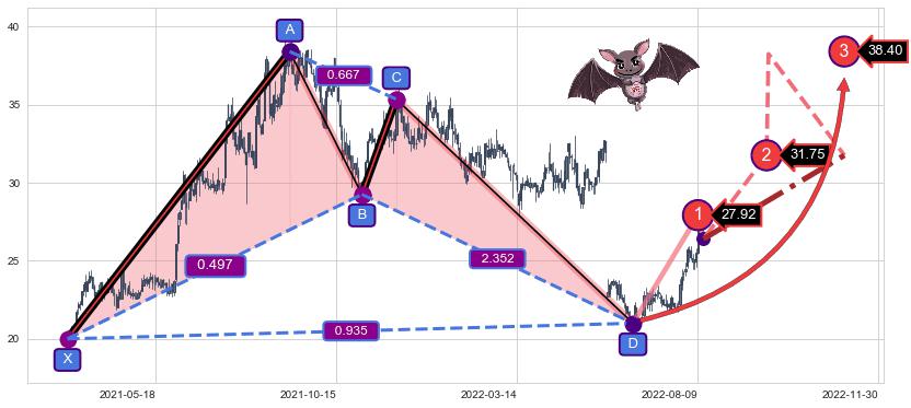 ➣ 已完成【蝙蝠】形态起点X: 2021-03-04, 终点D: 2022-06-20, 共314交易日