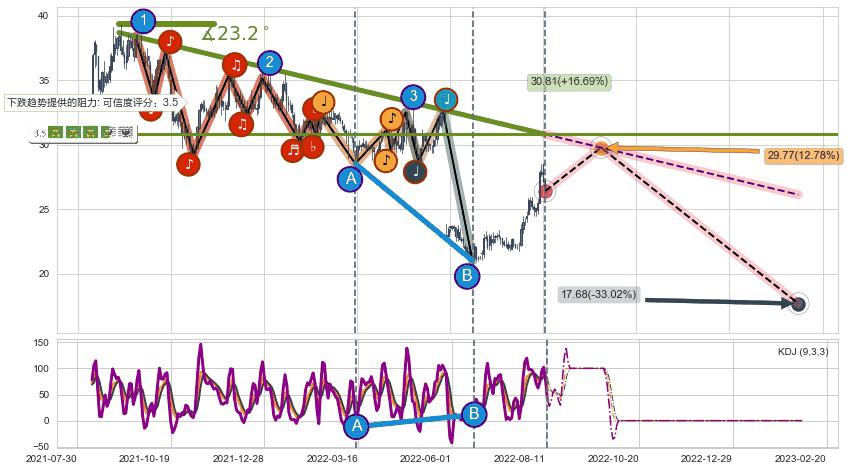 ➢ 预测:2022-09-23,【小幅反弹】稳定目前下跌趋势的前提下,预测价格:29.77