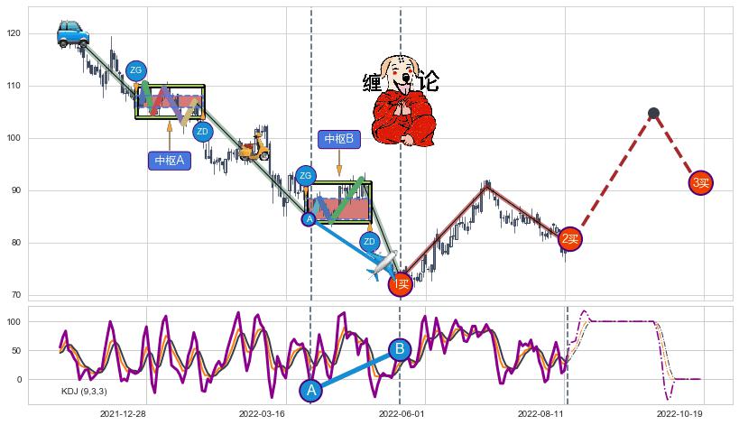 ➣ D点拟合预测价格97.01,距离最后交易收盘价格79.98相差 +21.30%