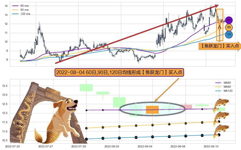 形态多维评估: ⚀ 2022-08-04日显现 60日-90日-120日均线 【鱼跃龙门】买入点 看多信号,后市看涨,买入