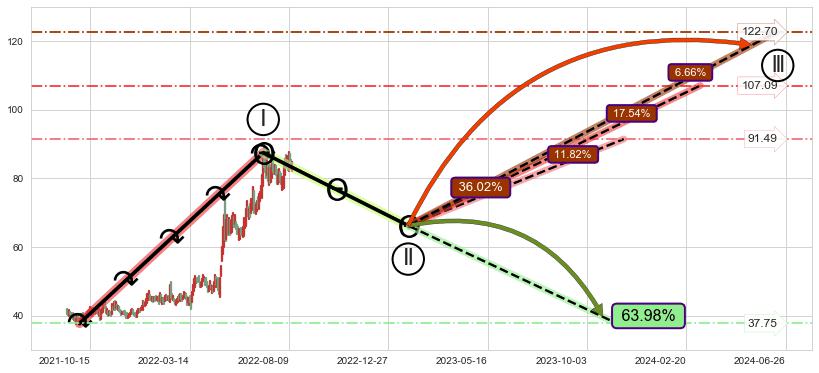 ➢ 大趋势走坏(跌破5浪起点位置)概率63.98%