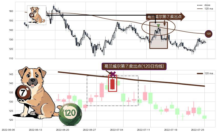 ⚀ 2022-06-30-日显现 葛兰威尔均线 120日均线 第⑦卖出点 下降趋势的中继信号,后市看跌,卖出信号