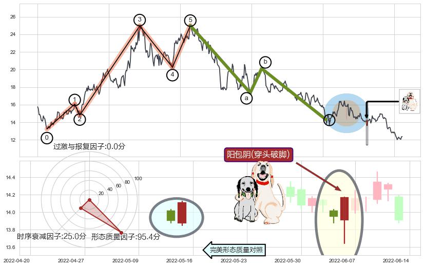 | 14 🅚:塔形顶 | 圆顶 ➕ 🌊:波浪理论上涨5浪延续回调:猜想回调C点击穿破位,猜想持续蓄力回调abc下跌方向(大周期趋势均值回复后小周期持续趋势跟踪) ☞ 看空信号 ⇥ 【🅚线】交织【图形】⇥ 综合量化分数: 46 | > |