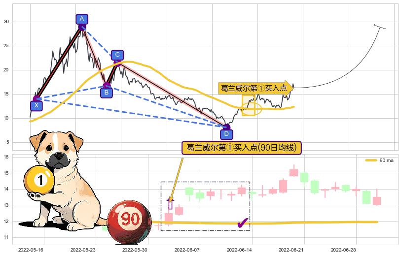 | 4 🅚:【金蜘蛛】买入点 ➕ 📡:谐波蝴蝶已到达d点:猜想c下行到达d点后报复性拉升上涨(均值回复) ☞ 看多信号 ⇥ 【均线】交织【图形】⇥ 综合量化分数: 81 | > |