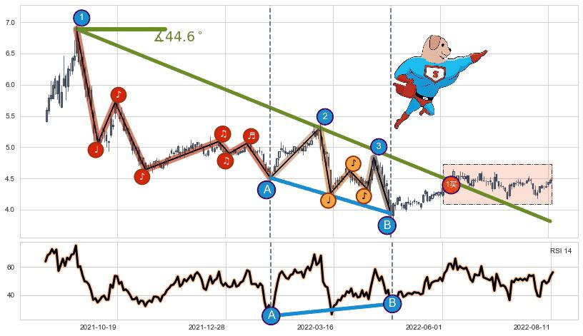 ➢ 2022-07-18到达第❶价格目标位置4.40