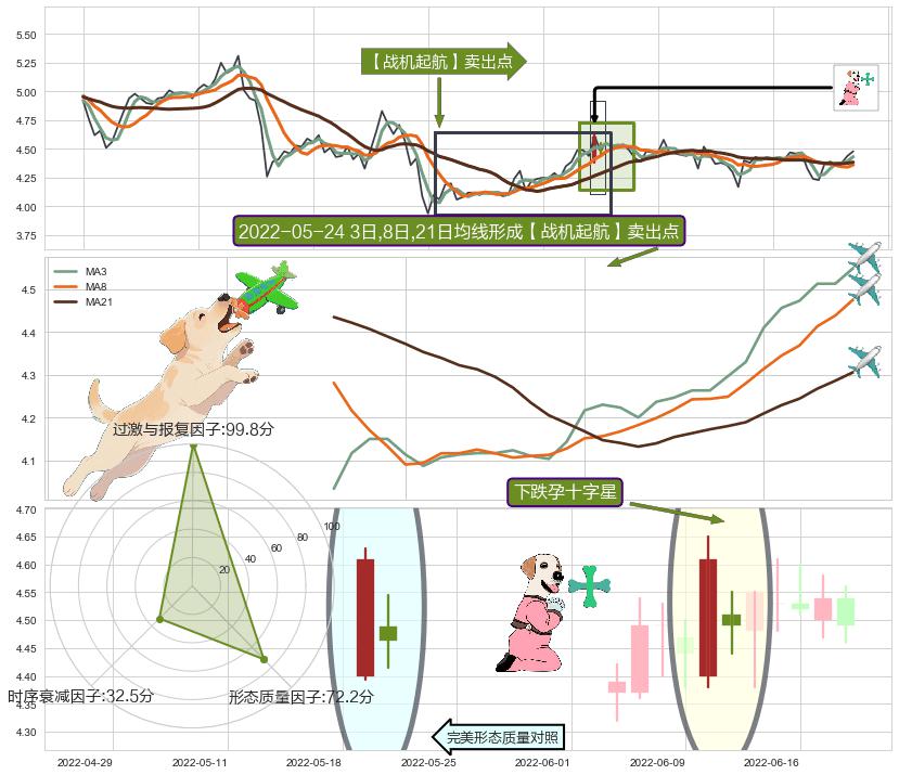 | 2 🅚:看跌(高位倒锤头)流星线 ➕ 🎢:【战机起航】卖出点均线组合卖出点信号形成后,猜想后续上行结束,持续回落下跌(均值回复) ☞ 看空信号 ⇥ 【均线】交织【🅚线】⇥ 综合量化分数: 47 | > |
