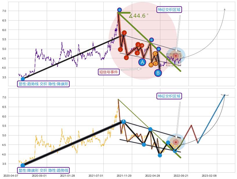 ➣ D点拟合预测价格4.70,距离最后交易收盘价格4.48相差 +4.89%