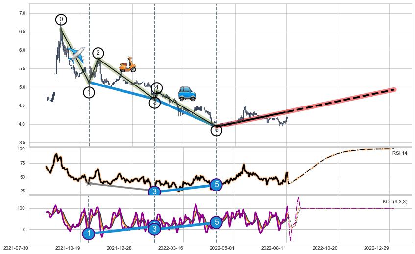 ➣ AI预测: 假定反转启动后, 第❸目标位置(2023-01-18, 3.930)