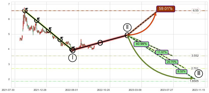 ➣ AI预测: 假定反转继续,第❷价格目标位置(2022-08-17, 4.29)