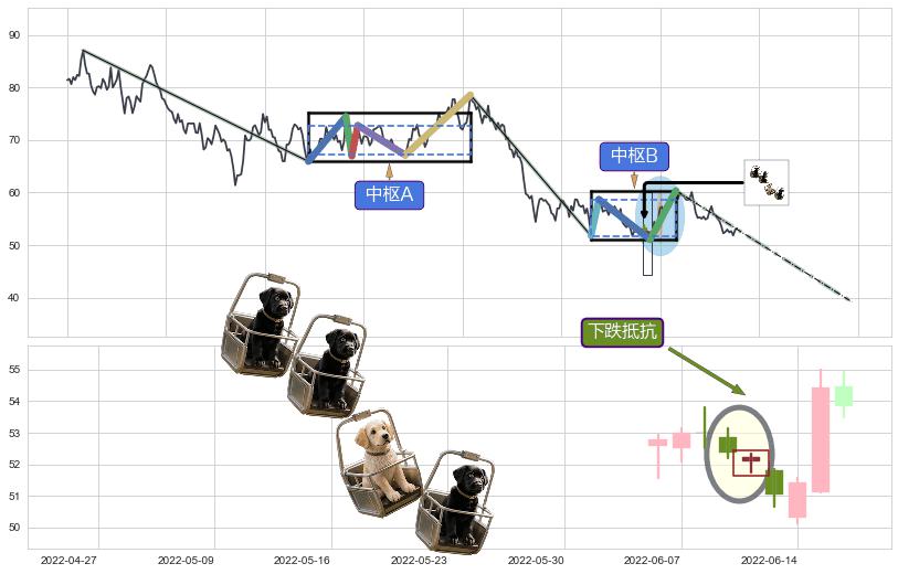 ➢ 【中枢B】:2022-04-26-2022-06-30,中枢由4笔构成,共44交易日, ZG=58.70, ZD=51.79