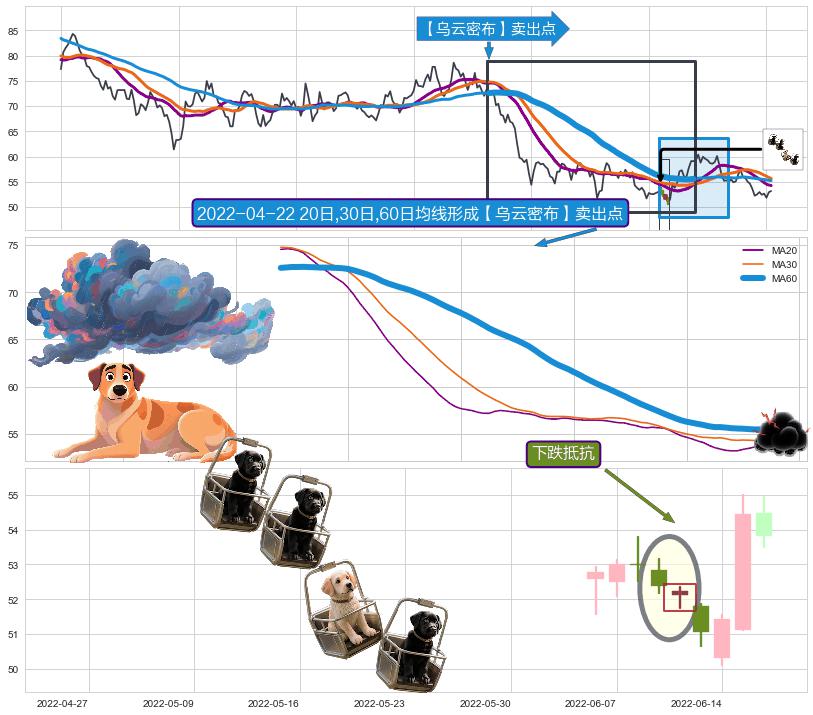 | 7 🅚:下跌孤独十字星 ➕ 🎢:【乌云密布】卖出点均线组合卖出点信号形成后,猜想后续下行持续,下跌加速(趋势跟踪) ☞ 看空信号 ⇥ 【均线】交织【🅚线】⇥ 综合量化分数: 44 | > |
