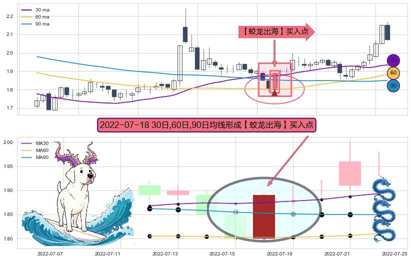 ⚀ 2022-07-18日显现 30日-60日-90日均线 【蛟龙出海】买入点 看多信号,后市看涨,买入