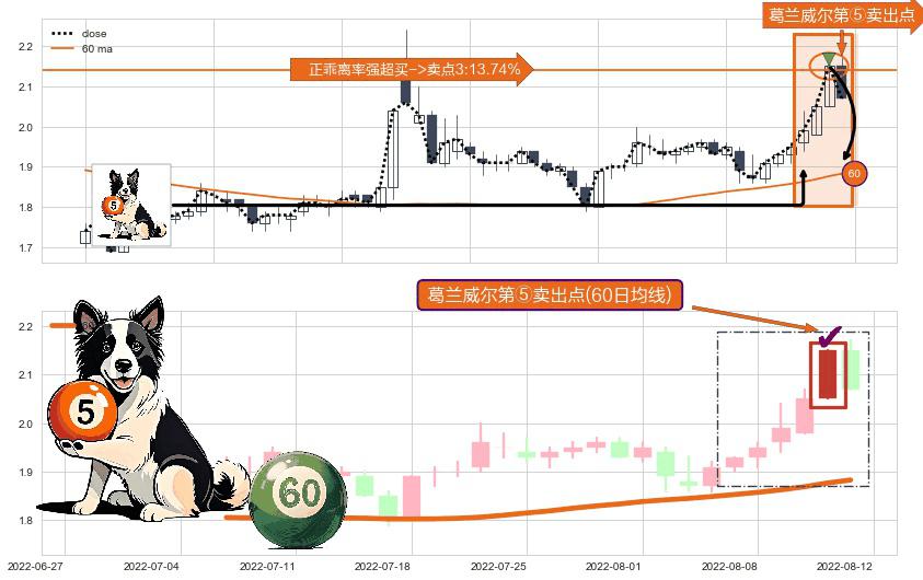 ⚀ 2022-08-11-日显现 葛兰威尔均线 60日均线 第⑤卖出点 上升趋势均值回复的短线回落信号,后市看跌,卖出信号