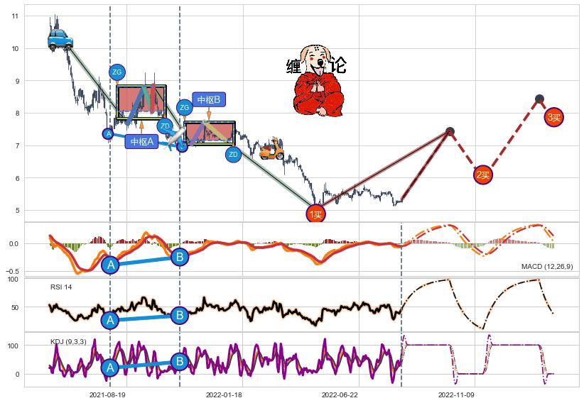 | 31 🅚:下探上涨 ➕ ☯️:缠论买卖点下降缠中枢AB形成后猜想拐点1买已到达,猜想后续持续拉升(均值回复) ☞ 看多信号 ⇥ 【🅚线】交织【图形】⇥ 综合量化分数: 51 | > |