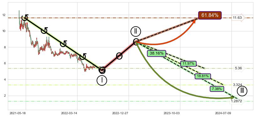 ➣ 大趋势循环浪继续向下概率38.16%