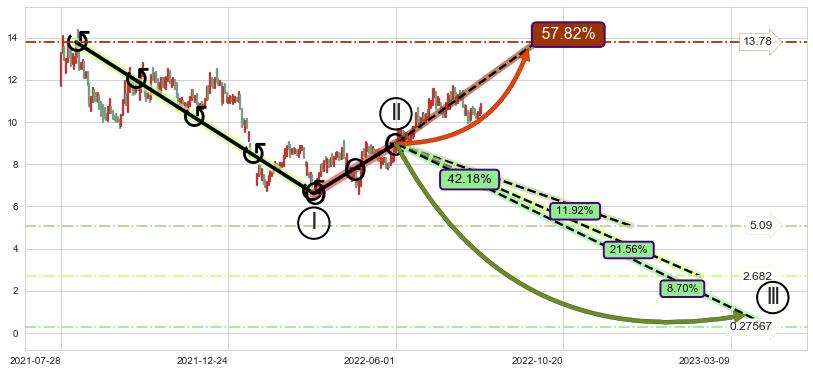 ➣ 循环浪继续向下【平均值】位置(2023-02-13, 2.682),匹配聚类样本比例51.12%, 可能性概率21.56%