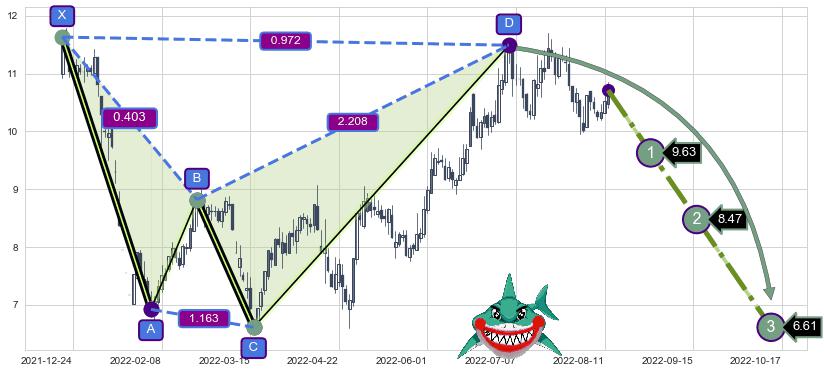 ➣ 已完成【鲨鱼】形态起点X: 2021-12-21, 终点D: 2022-07-05, 共127交易日