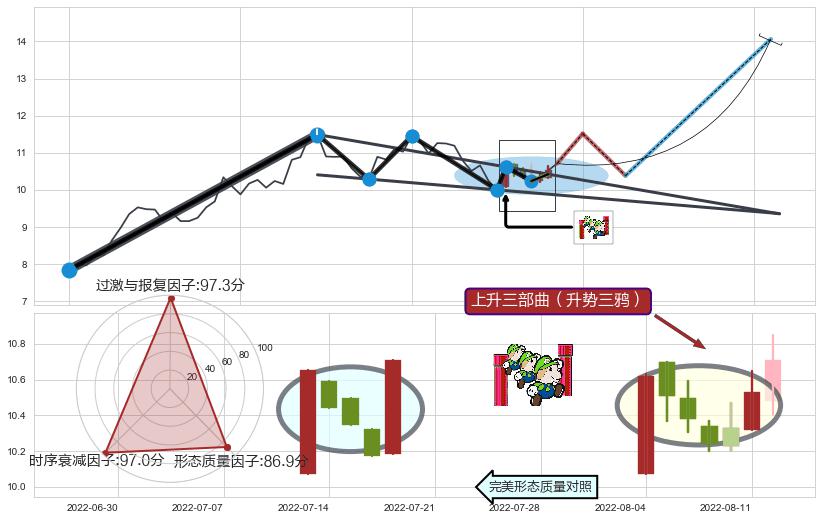 ➢ 【买1】: 激进型 买点 →(2022-08-11: 10.42 )形成突破降🚩楔型【整理】形态
