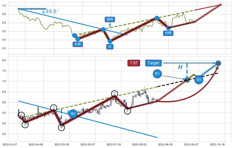 ➣ 最小反转涨幅→𝐇: 0.7938 (头部与颈线垂直距离)