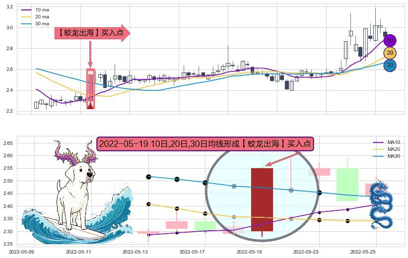 形态多维评估: ⚀ 2022-05-19日显现 10日-20日-30日均线 【蛟龙出海】买入点 看多信号,后市看涨,买入