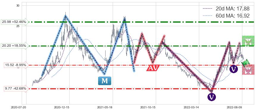 ♘ 阻力价格位20.20,可信任强度64.07%,距离最后交易2022-08-12形成的收盘价格17.04相差 +18.55%