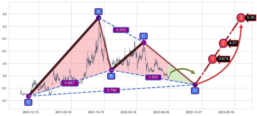➣ AI预测: 假定反转启动后, 第❶目标位置(2023-02-10, 3.674)