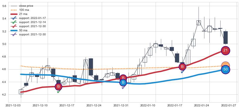 上涨趋势2021-12-03-2022-01-27,均线50, 21确认关键支撑3处