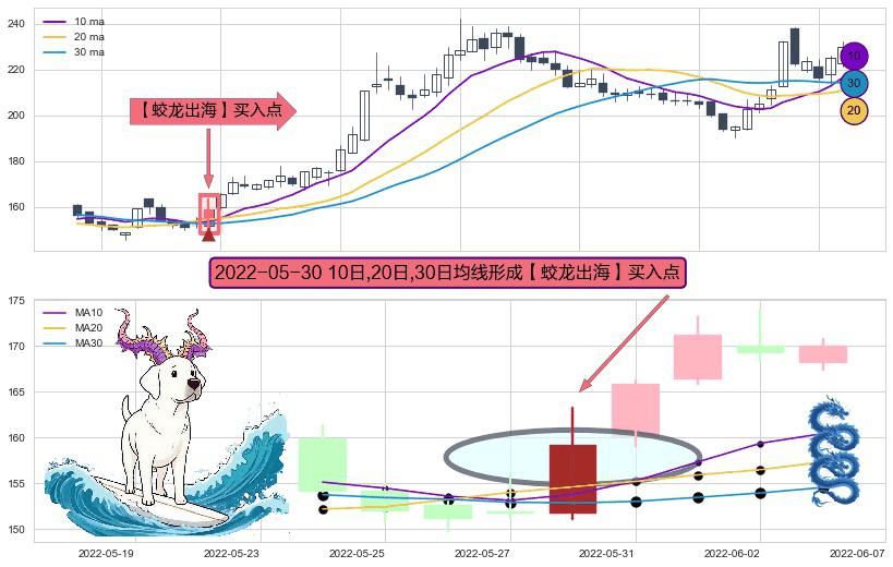 形态多维评估: ⚀ 2022-05-30日显现 10日-20日-30日均线 【蛟龙出海】买入点 看多信号,后市看涨,买入