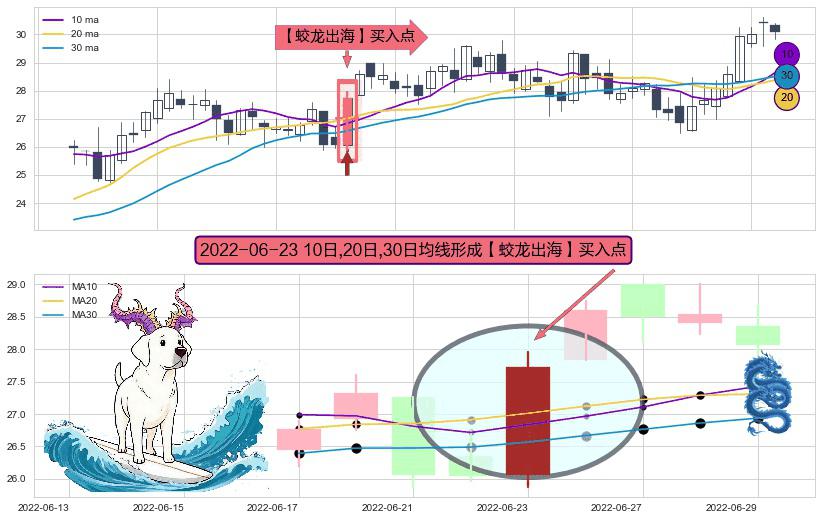 形态多维评估: ⚀ 2022-06-23日显现 10日-20日-30日均线 【蛟龙出海】买入点 看多信号,后市看涨,买入