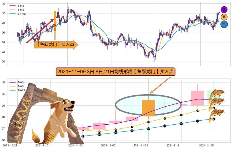形态多维评估: ⚀ 2021-11-09日显现 3日-8日-21日均线 【鱼跃龙门】买入点 看多信号,后市看涨,买入