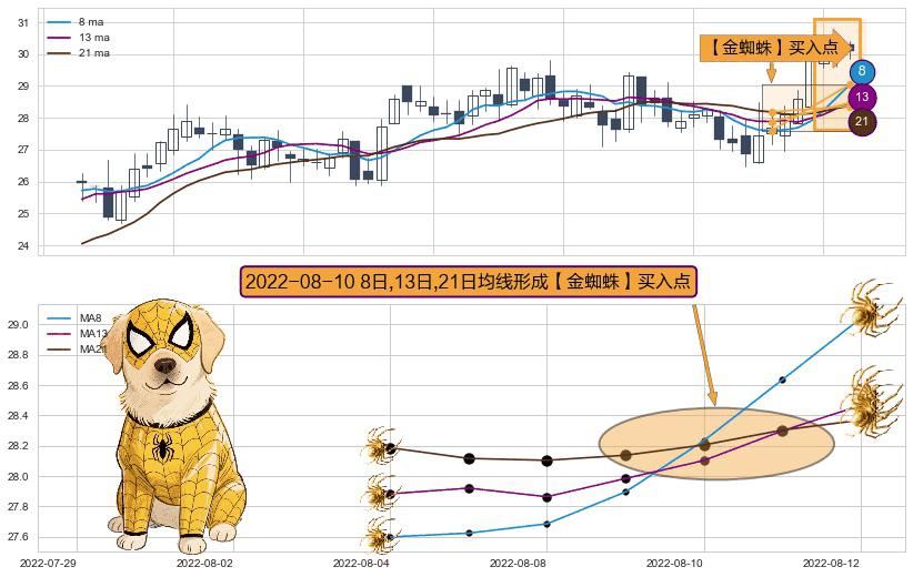 形态多维评估: ⚀ 2022-08-10日显现 8日-13日-21日均线 【金蜘蛛】买入点 看多信号,后市看涨,买入