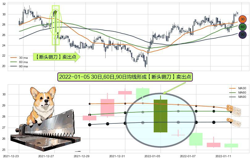 形态多维评估: ⚀ 2022-01-05日显现 30日-60日-90日均线 【断头铡刀】卖出点 看空信号,后市看跌,卖出