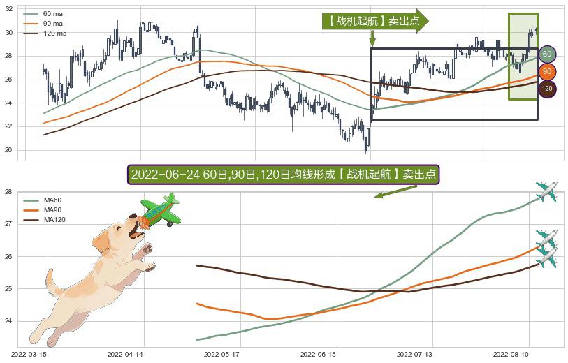 形态多维评估: ⚀ 2022-04-29日-2022-08-12日显现 60日-90日-120日均线 【战机起航】卖出点 看空信号,后市看跌,卖出