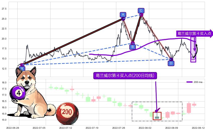♘ 支撑价格位15.03,可信任强度99.00%,距离最后交易2022-08-12形成的收盘价格16.29相差 -7.76%