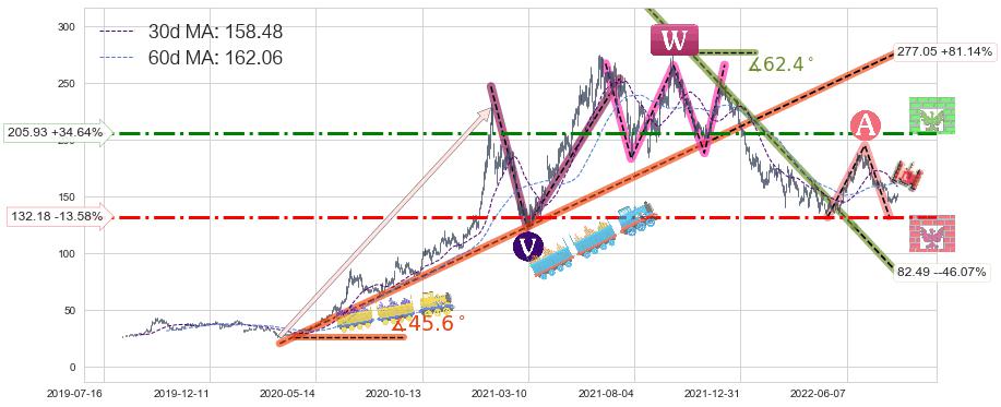 ➢ 【仅预测突破】最后价格:152.95与预测突破价格:192.82→【空间中等】后续最小【反转】第一目标价格→(2022-09-21: 236.86 )