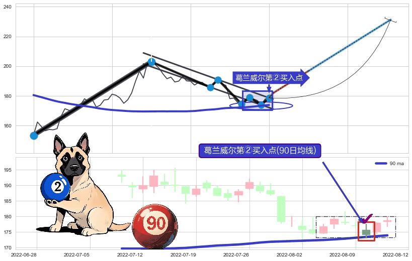➣ 收盘价(2022-03-22: 164.30 )→回踩→第一根k线高点(2022-03-16: 165.55 )