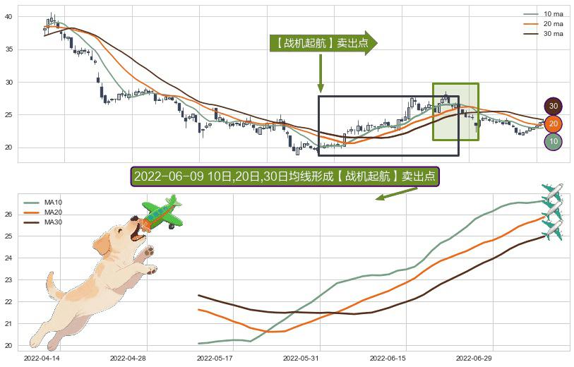 形态多维评估: ⚀ 2022-05-11日-2022-07-07日显现 10日-20日-30日均线 【战机起航】卖出点 看空信号,后市看跌,卖出