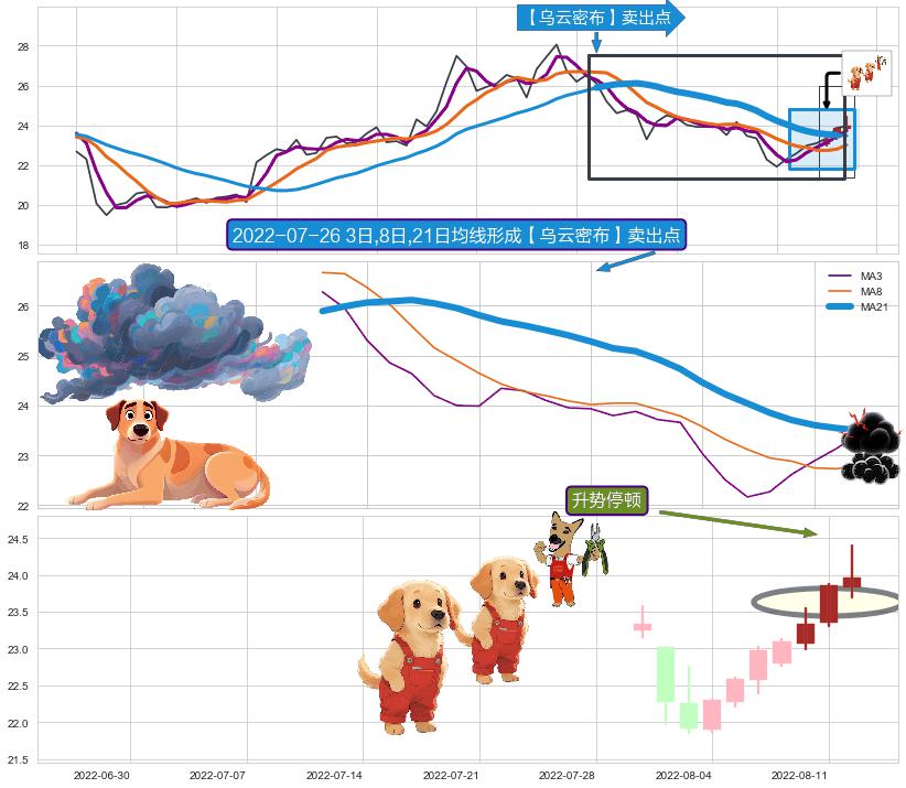 | 2 🅚:塔形顶 | 圆顶 ➕ 🎢:【毒蜘蛛】卖出点均线组合卖出点信号形成后,猜想三条均线周期内的交易者都看空后市,持续下跌 ☞ 看空信号 ⇥ 【均线】交织【🅚线】⇥ 综合量化分数: 47 | > |