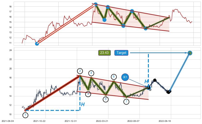 ➣ 最小中继整理涨幅→𝐇: 7.58 (𝐇旗杆的长度:旗杆起点→顶点)