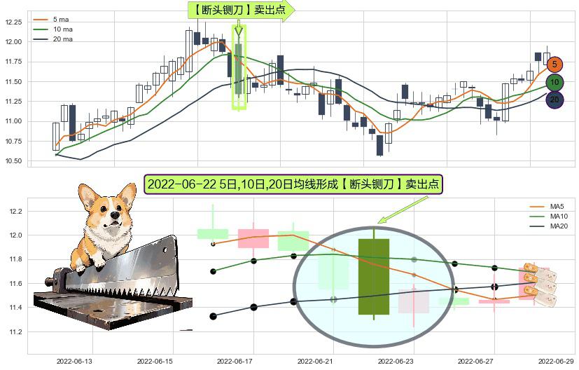 形态多维评估: ⚀ 2022-06-22日显现 5日-10日-20日均线 【断头铡刀】卖出点 看空信号,后市看跌,卖出