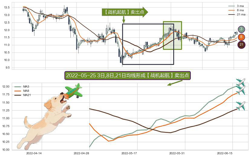 形态多维评估: ⚀ 2022-04-28日-2022-06-16日显现 3日-8日-21日均线 【战机起航】卖出点 看空信号,后市看跌,卖出