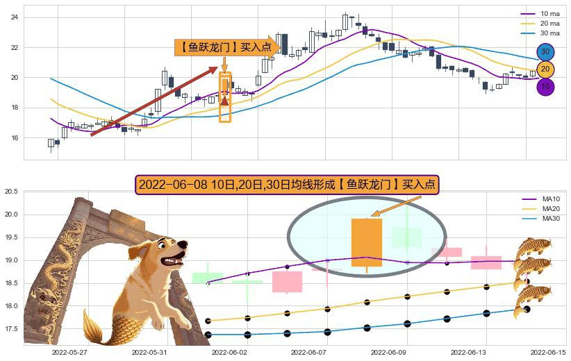 ⚀ 2022-06-08日显现 10日-20日-30日均线 【鱼跃龙门】买入点 看多信号,后市看涨,买入